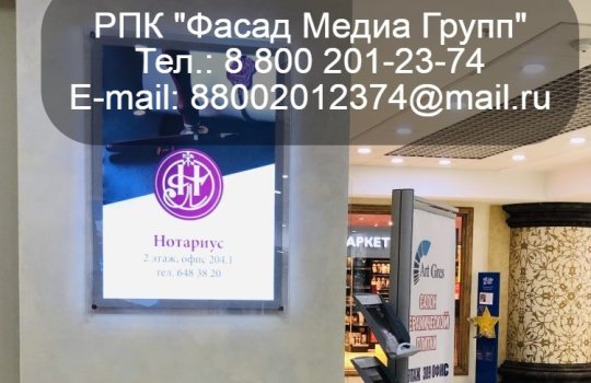 31.03.2022 г. Размещение рекламы в бизнес-центре для нотариуса Емельяненко А.С.