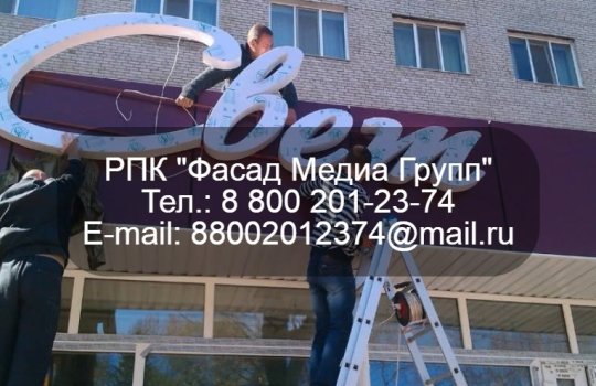 РПК «Фасад Медиа Групп» изготовило и установило рекламную вывеску для нашего клиента ООО «Свет». Процесс изготовления данной рекламной конструкции занял 10 рабочих дней. Помимо этого, мы разработали техническую документацию и согласовали ее в органах государственной власти. Для изготовления и установки рекламной вывески обращайтесь в нашу компанию. Будем рады сотрудничеству