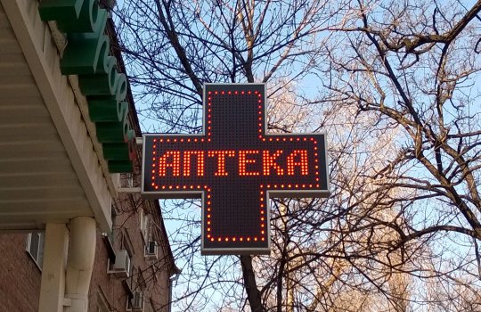 Заходя в аптеку, люди сталкиваются с рекламными конструкциями различных форматов. Частота контактов потенциальных клиентов с рекламой, размещенной, к примеру, на фасаде здания в виде аптечного креста, находится на очень высоком уровне. По статистике, с данной рекламной вывеской, установленной на фасаде аптеки, люди могут контактировать до нескольких тысяч раз в сутки.