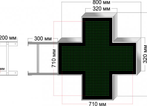 Как видим, существует большое количество аптечных крестов самого различного вида. В настоящее время особую популярность завоёвывают диджитал-конструкции, способные демонстрировать движущиеся элементы за счет светодиодных панелей.